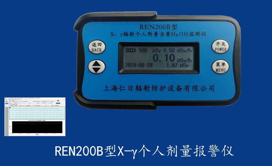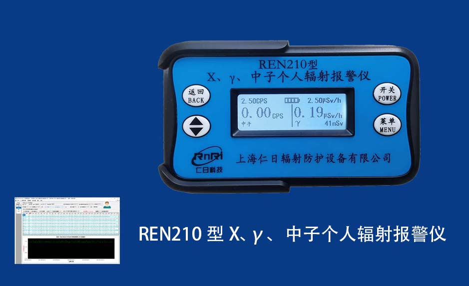 REN210型X、γ、中子個人輻射報警儀內置SiPM和鋰玻璃晶體組成中子探測器儀器,采用反照率方式探測中子射線,同時也能探測X、γ射線。因此它可同事監檢測X、γ、中子三種射線。能顯示工作場所的劑量當量率和累積劑量,更換電池時,日期及累積數據能永久保存?蛇x配RenRiPersonal個人劑量管理軟件,該軟件可存儲多個人的歷史數據,能記錄日累積、月累積、年累積、輻照時長、計算平均劑量率、扣除或不扣除本底輻射,且以文字和圖譜的方式展現數據。廣泛應用于環保、化工、水泥、煤礦、土木工程、石油、醫院、疾控、進出口商檢、核電、加速器、機場、中子源庫和其他安檢、邊境控制海關檢測等領域中的工作人員進行個人安全防護監測及放射性提示。